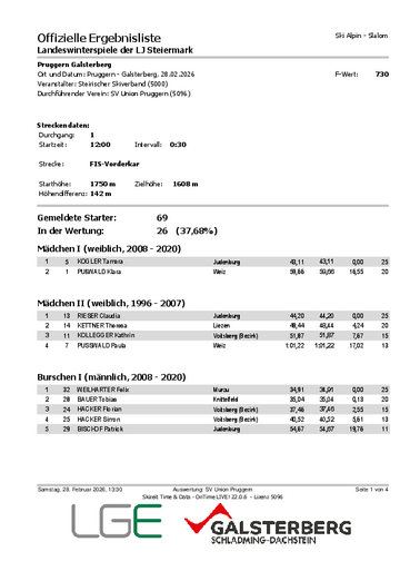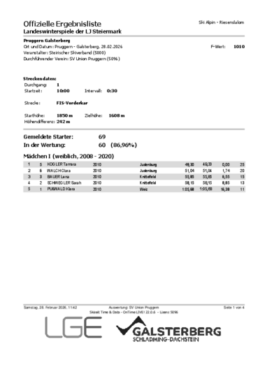 Slalom Alpin Mädchen I TamaraKogler Weißkirchen (JU)