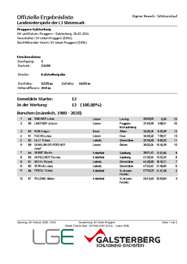 Bei den Herren ging der Sieg im Schnecknerodeln in den LJ Bezirk Murau zu Stefan Huber. Bei den Sportrodlern setze sich Simon Ebenschweiger aus dem LJ Bezirk Liezen durch.